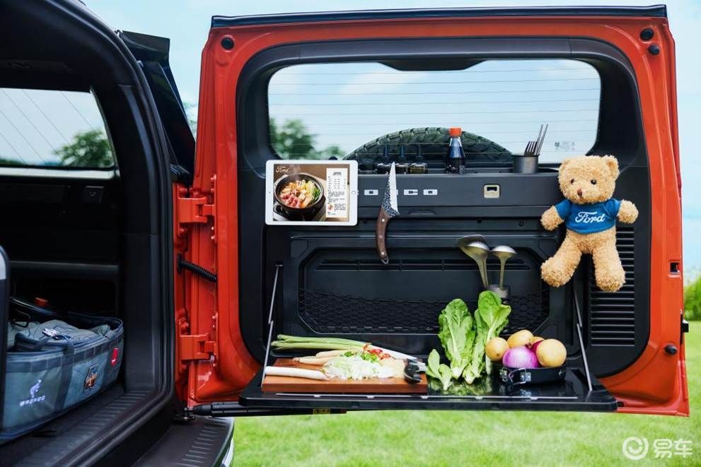 抵达营地,福特智趣烈马迅速化身“户外露营营地”。原厂定制侧边帐在草坪上轻盈展开,瞬间构筑起“一厅”。启动一/二排一键成床模式,座椅自动放平形成2米大床,B柱出风口送来恰到好处的微风,C柱充电口触手可及,如同精心设计的"枕边床头柜",一键即成一卧。如需短暂休息,一键“小憩模式”可联动座椅、空调、灯光、音响系统,营造出完美的休憩环境。此时打开尾门,配合6.6kW对外放电,电磁炉与咖啡机同时运转,5分钟内在青山绿水间搭建起完整的山野厨房,真正实现"一厅一卧一厨"的完整户外生活空间。