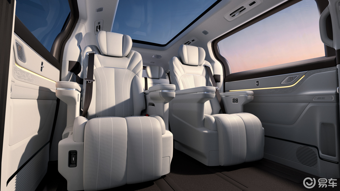 内饰延续“中式豪华”核心格调,“步步高升”三层递进式仪表台借鉴中国古典建筑礼序,功能分区清晰有序;“如意流风”空调出风口与“奇石听涛”高音扬声器融入传统吉祥元素,晨曦米、霞光橙两种“天光云影”配色,营造出温润静谧的座舱氛围。空间表现方面,新车以5360mm×1998mm×1920mm的车身尺寸与3200mm的超长轴距,实现8.41㎡超大车内有效面积,91.8%的同级最高得房率领先行业。独创的“3个1”空间布局极具亮点,二排与三排腿部空间均超1013mm,后备箱容积突破1100L,2720mm贯穿通道搭配同级最宽的中央通道,让三排乘客进出自如。6/7/8座灵活布局可适配商务接待、三代同堂等多元场景,行业首创的魔法第四排支持前翻乘坐、后翻观景或折叠拓展,全车42处储物空间更让随身物品收纳无忧。