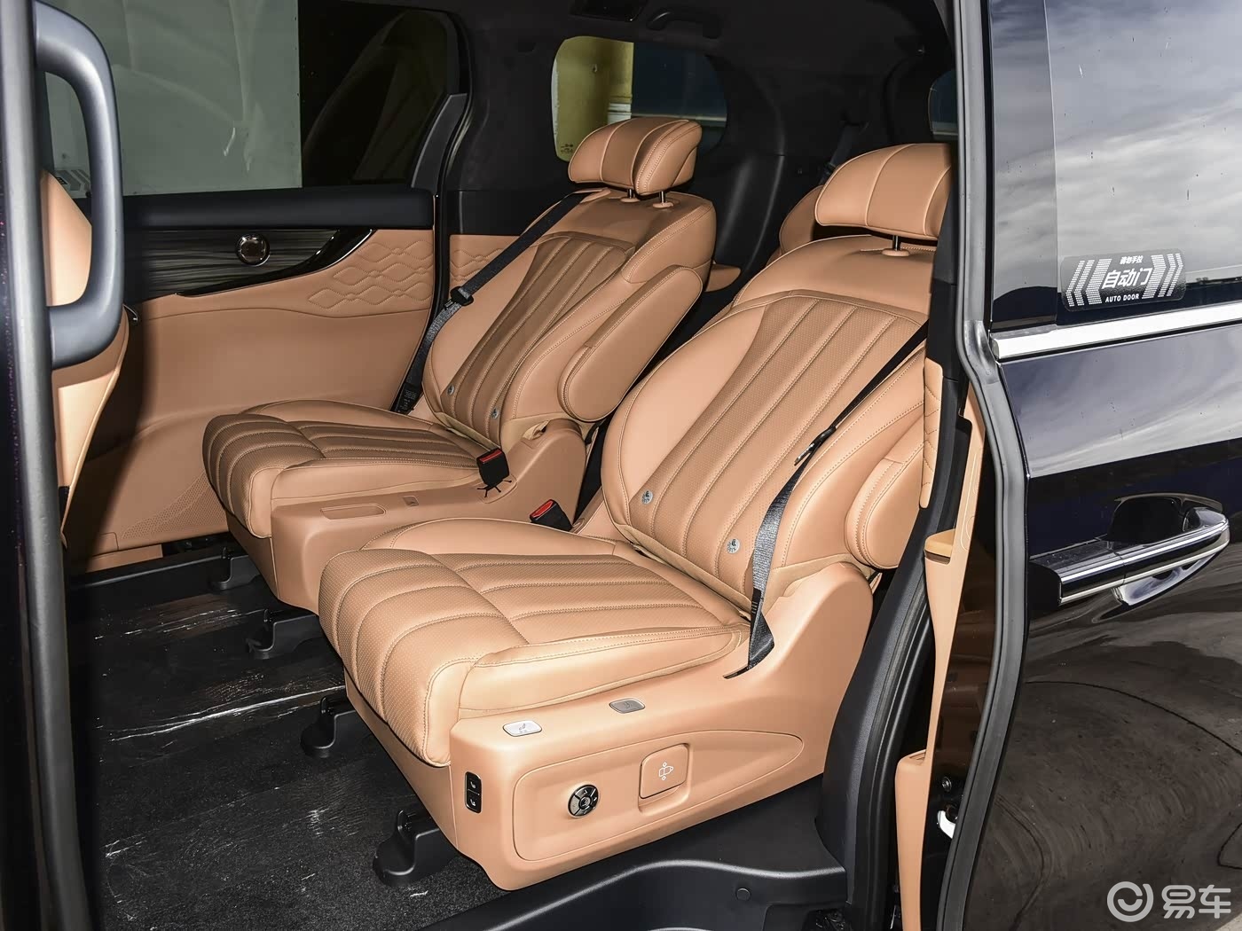 空间方面,开启电动侧滑门后,可以看到,第二排的腿部空间十分宽敞,而且座椅支持前后调节、靠背调节、腰部调节、腿托调节、左右调节等,前后排座椅都支持加热/通风/按摩功能,座椅也拥有很高的乘坐舒适性。