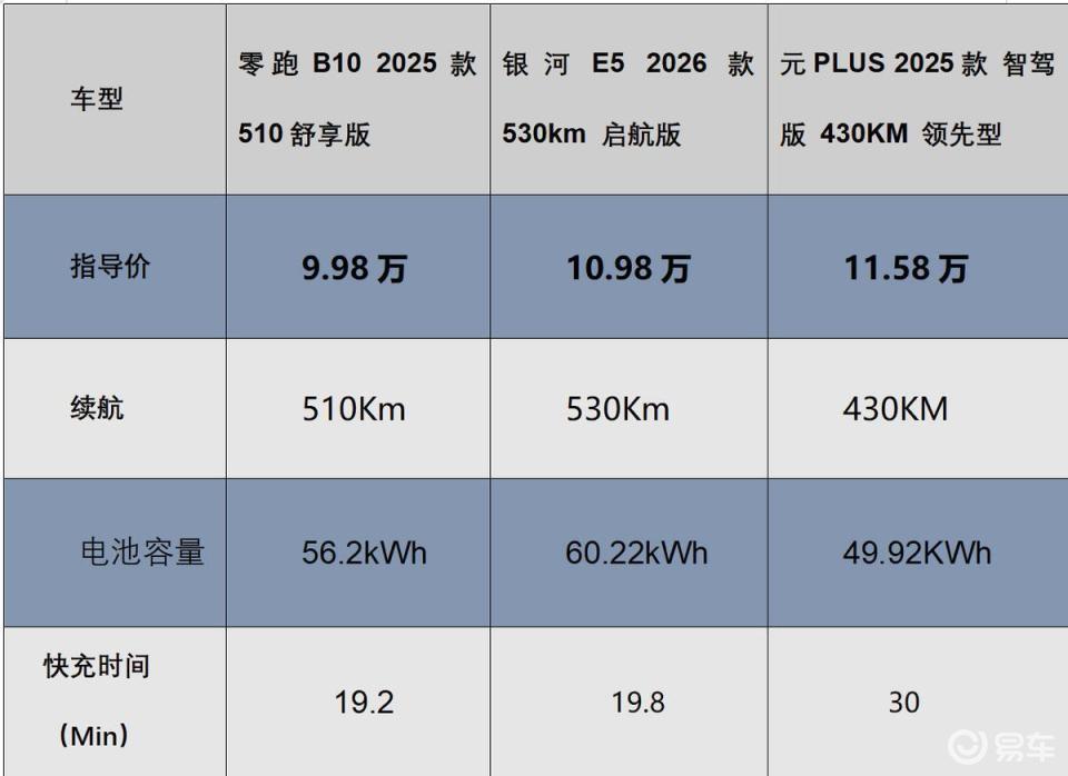 对于大多数家庭用户,10-15万级的纯电SUV才是真正的刚需市场,这个价位里,零跑B10上市后销量可是一直稳居前5,算是用户用真金白银投出来的热门款,即使从整体品牌来看,零跑表现也是很耀眼,在10月份交付超过7万台,展现出了十足的统治力,那零跑B10到底值不值得选?咱们把它和同级热门的26款吉利银河E5、比亚迪元PLUS放在一起比一比,答案就清楚了。