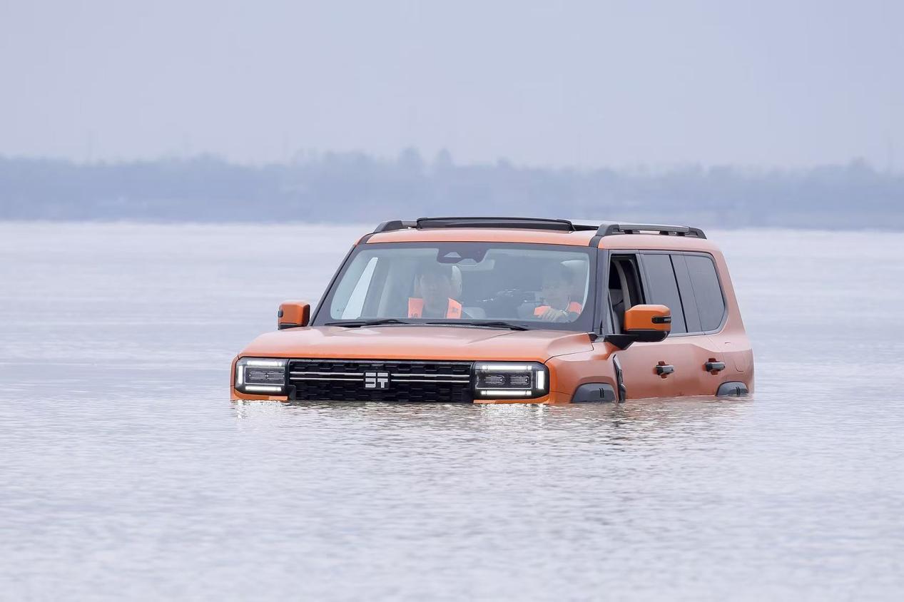 而纵横G700全系都标配的前后桥的差速锁,还有970mm的涉水深度,配合空气悬挂+CDC,攀爬越野、下水摸鱼,这些都不在话下。另外,纵横G700还有一款可以在水里行驶的版本,虽然还没有量产,但这应该是目前的汽车市场里唯一一台能在水里正常行驶的车型。所以不管在越野配置还是在通过性上,纵横G700都要更胜一筹。