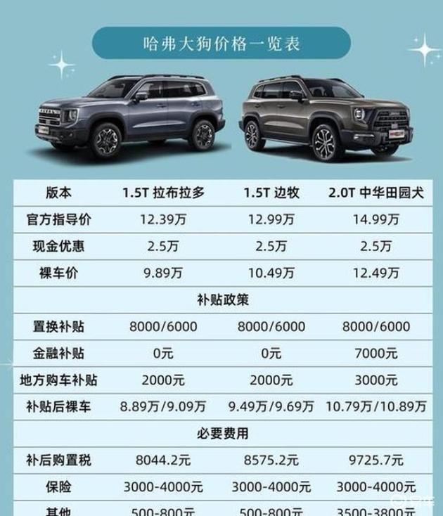 哈弗大狗的购买者则更注重一次性投入成本。主销的1.5T边牧版指导价为12.39万元,终端常有5000元的优惠,落地价约为14.1万元。2.0T版本在城市拥堵路况下的油耗约为10.5-12升,同样行驶五年、每年2万公里,仅油费一项,相较于钛7,哈弗大狗的车主将多支出近3万元。