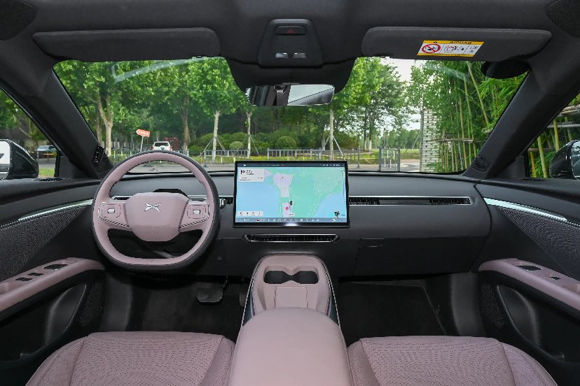 小鹏 MONA M03 的内饰设计和零跑 B01 的风格完全不一样。比如它采用了类似于特斯拉的无仪表屏内饰布局,整体内饰风格偏向简洁,中间就一块独立中控屏,显示导航和车辆状态的信息。