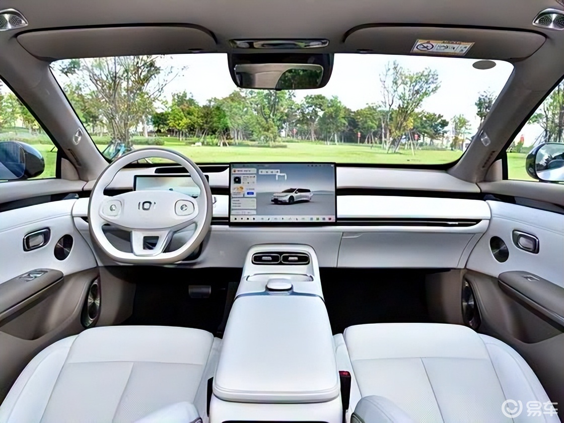 进入车内,环抱式的座舱布局带来了开阔的视觉感受。在用料上,腰线以上区域较多地使用了触感柔软的包覆材料。车辆标配了10.17英寸液晶仪表和一块15.6英寸的悬浮式中控屏,屏幕分辨率为2.5K。车机系统搭载了4纳米工艺的高算力芯片,并融合了双AI大模型,其语音控制系统支持四音区识别和连续对话等功能。