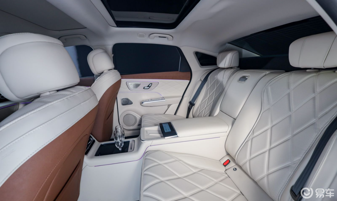 值得注意的是,四座版车型在内饰氛围上更偏向行政豪华,采用了棕/米白双色配色,后排配备独立座椅控制面板,支持通风、加热与按摩功能,并内置13.7升容量的冷暖箱,可实现从零下18度到50度的宽域温控。此外,隐藏式小桌板的加入,进一步满足了商务出行或家庭休旅中的多功能需求。