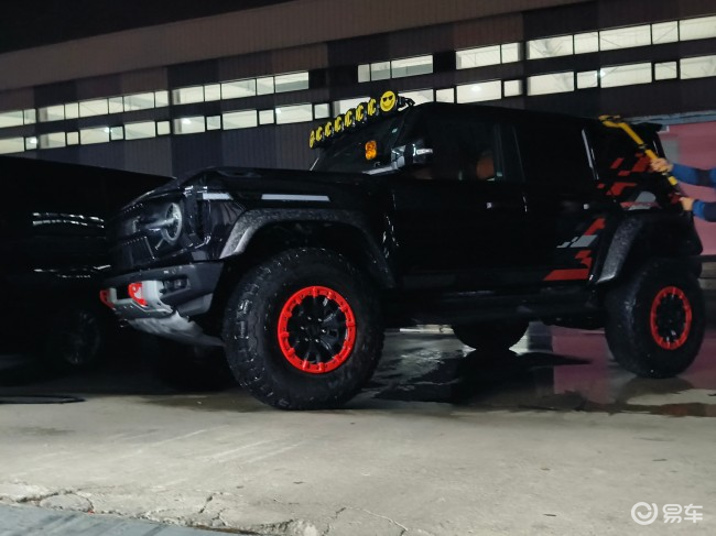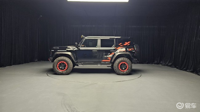 克蒂怪兽SV7-猛禽版的外观堪称“移动的越野艺术品”,4851×2177×1980mm的魁梧身形搭配2950mm轴距,勾勒出刚健雕塑般的宽体轮廓,完美诠释美式豪华的大气磅礴。锻造纹碳纤维发动机舱盖带散热透气孔与专属标识,搭配贯穿直瀑式LED背光中网格栅和黑水晶标,前脸极具视觉冲击力;宽体锻造纹碳纤维轮眉、橙色轮毂压盘与17英寸黑色竞技轮毂相得益彰,搭配百路驰37专业越野轮胎,野性气息扑面而来。