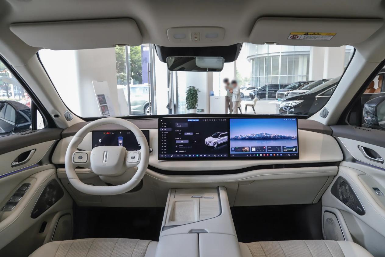 进入车内,车辆的内饰延续了旧款车型的设计配置。中控台采用的是15.6 英寸中控屏,27 英寸彩色多点触控屏和12.3 英寸全彩仪表形成三屏联动,搭载 NVIDIA DRIVE Thor-U 芯片,算力冗余提升176%。空间方面,座椅采用的是Nappa材质进行包裹,二排座位拥有 1 米级腿部空间,180cm 成年人可实现 “半躺式” 乘坐,三排座椅拥有826mm 腿部空间与 851mm 头部空间。