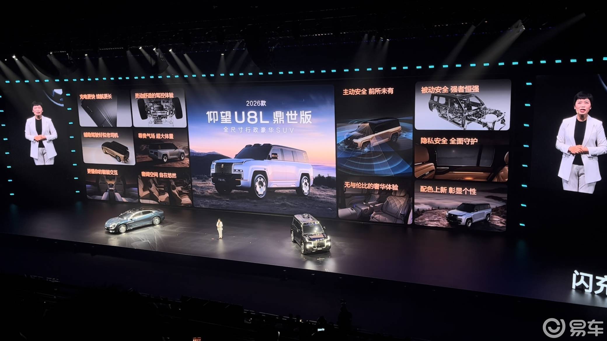 仰望U8L鼎世版 2026款同样提升了续航、搭载闪充技术,并在整车安全上再次升级。新车配备了全新的全场景隐私安全功能,不管是出行行程,还是个人数据,隐私保护的安全锁进一步加固,实现用车数据安全、隐私无忧。同时,仰望首创的高速爆胎稳行能力进一步扩展,通过与天神之眼系统相融合,带来了NOA爆胎稳行稳停功能,为辅助驾驶安全打造更强防线。另外,应急浮水功能从手动开启升级到自动开启,为生命安全争取最宝贵的时间。这三项安全升级,老客户也将通过OTA升级实现。