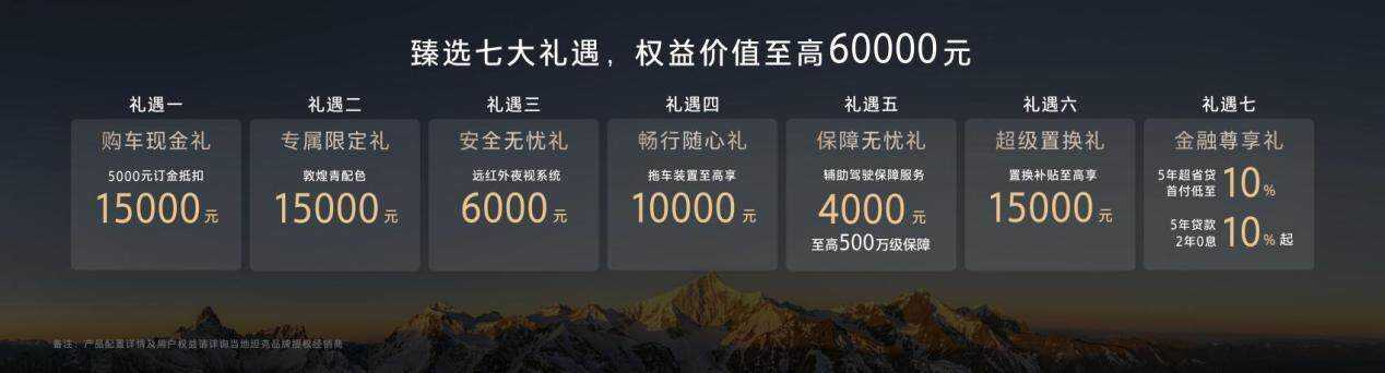 于消费者尤为关注的价格与配置维度,本次预售方案展现出精准的针对性。价值达6.2万元的核心配置,涵盖22寸轮毂、后排娱乐屏、冷暖冰箱,以及城市与高速NOA的终身使用权,均纳入全系标配范畴,有效规避了“选装陷阱”的购车困扰。再结合预售阶段的“臻选七大礼遇”,诸如订金增值、限定车色、置换补贴等,综合权益价值累计可达6万元。如此一来,入门版的实际入手门槛与顶配的满配享受均更具魅力,于50万级的市场区间,打造出融合非承载式车身、大排量或高效混动、高阶智驾的独特产品矩阵,与同级别豪华SUV构建起鲜明的差异化优势。